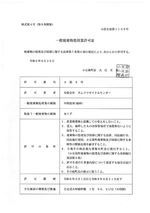 ※許可証のコピーをご希望の方はFAX等で対応いたしますので、ご連絡ください。